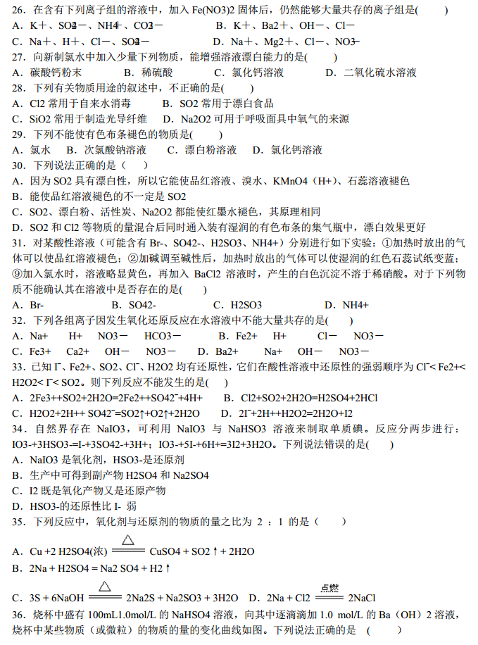 河北景县中学2017届高三上学期摸底考理综化学试题及答案(4)