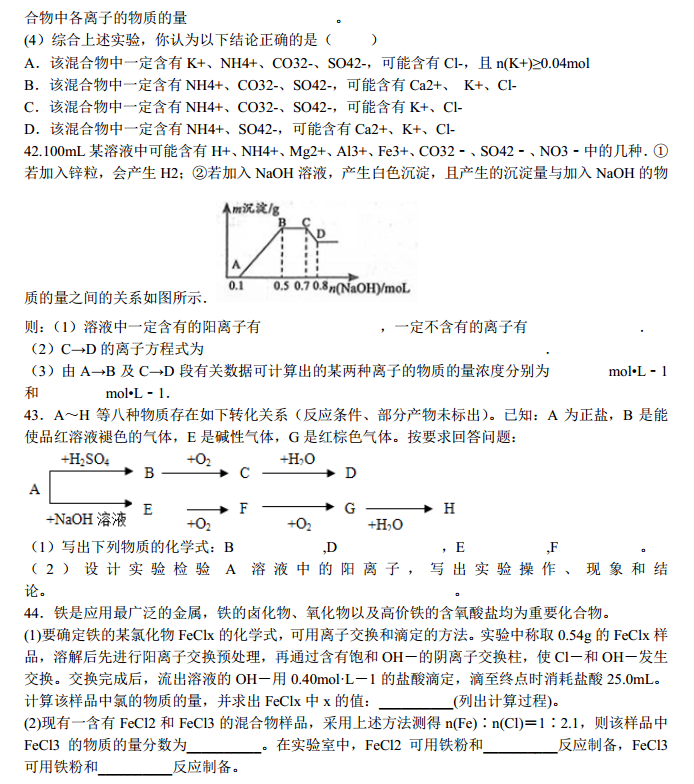 河北景县中学2017届高三上学期摸底考理综化学试题及答案(6)