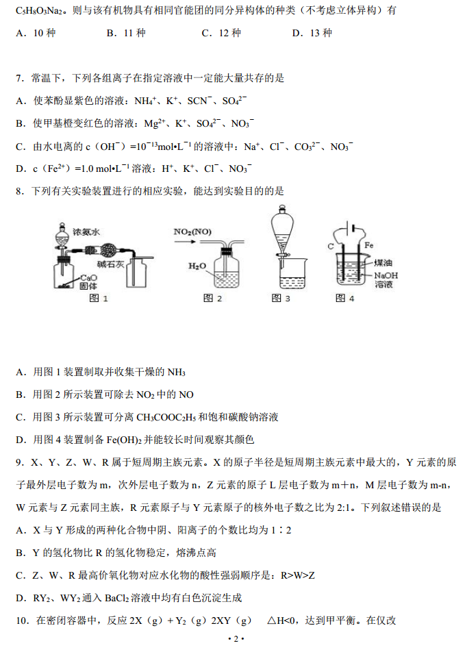 河北五个一联盟邯郸2017届高三上第一次模拟考化学试题及答案(2)