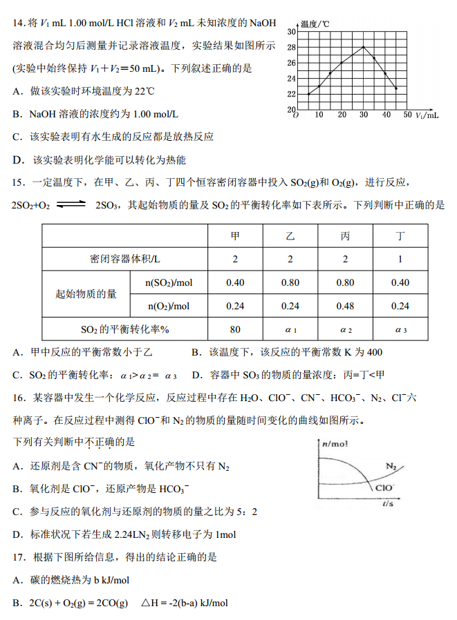 河北五个一联盟邯郸2017届高三上第一次模拟考化学试题及答案(4)
