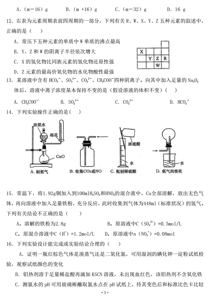 河北定州中学2017届高三上学期第一次月考理综化学试题及答案(3)