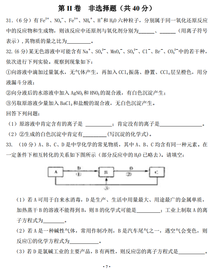 河北定州中学2017届高三上学期第一次月考理综化学试题及答案(7)