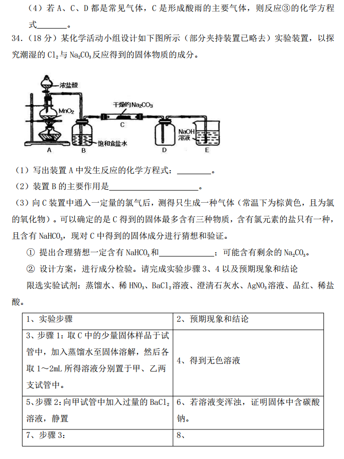 河北定州中学2017届高三上学期第一次月考理综化学试题及答案(8)