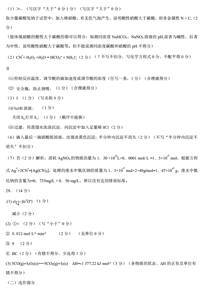 河北衡水中学2017届高三摸底联考全国卷化学学科试题答案(2)