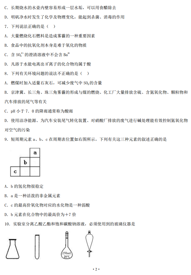河北定州中学2017届高三高补班上学期第一次月考化学试题答案(2)