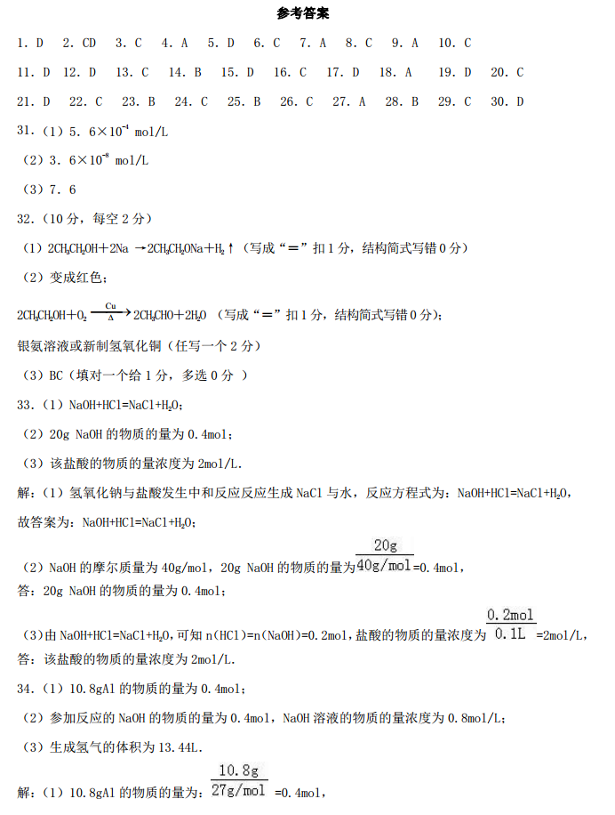 河北定州中学2017届高三高补班上学期第一次月考化学试题答案(9)