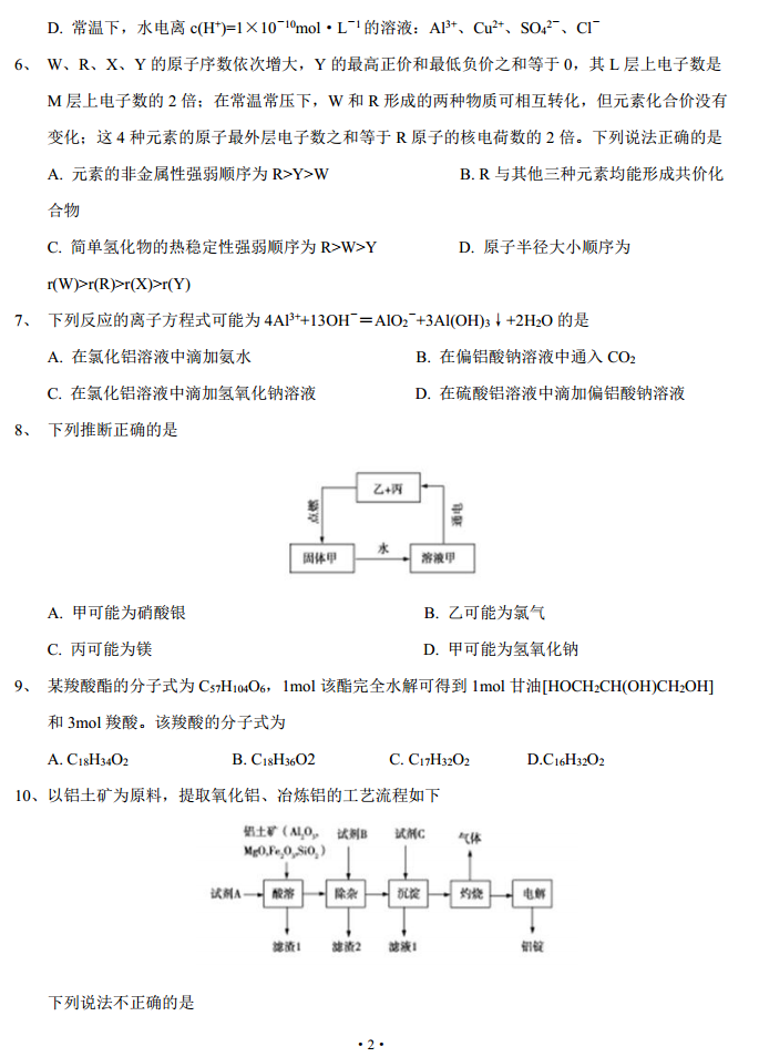 湖南长沙长郡中学2017届高三上学期第二次周测化学试题答案(2)