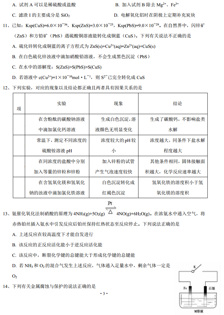 湖南长沙长郡中学2017届高三上学期第二次周测化学试题答案(3)