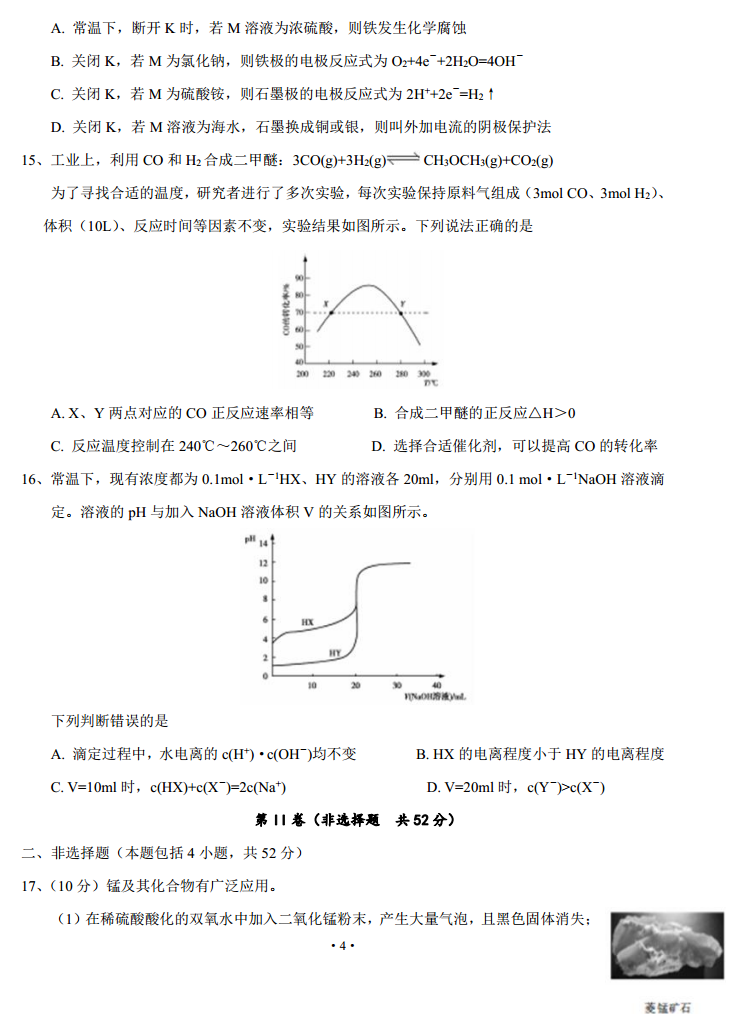 湖南长沙长郡中学2017届高三上学期第二次周测化学试题答案(4)