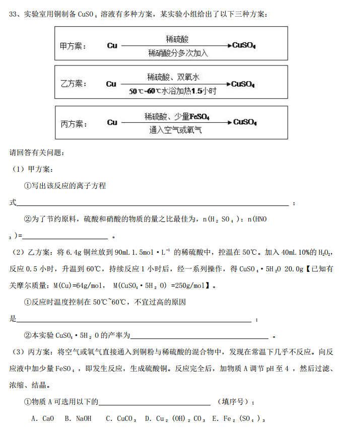河北衡水中学2017届高三上学期小二调考试理综化学试题答案(10)