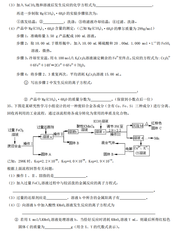 河北衡水中学2017届高三上学期小二调考试理综化学试题答案(12)
