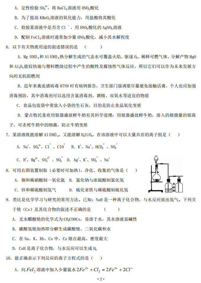 河北衡水中学2017届高三上学期小二调考试理综化学试题答案(2)