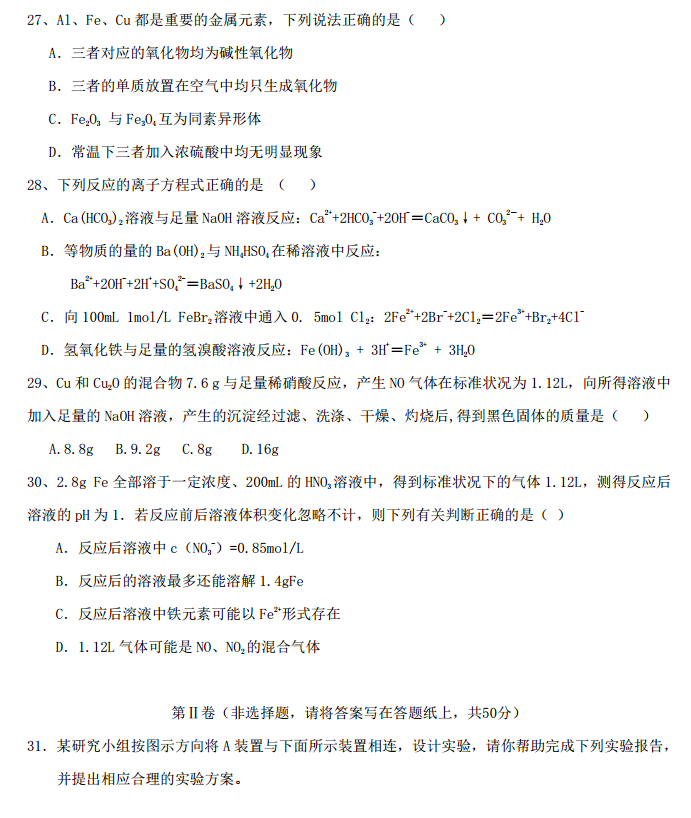 河北衡水中学2017届高三上学期小二调考试理综化学试题答案(7)
