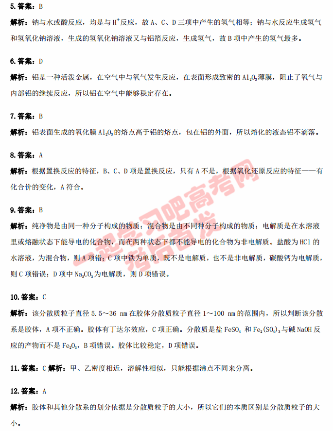 河北故城县高级中学2017届高三上期第一次月考化学试题答案(9)