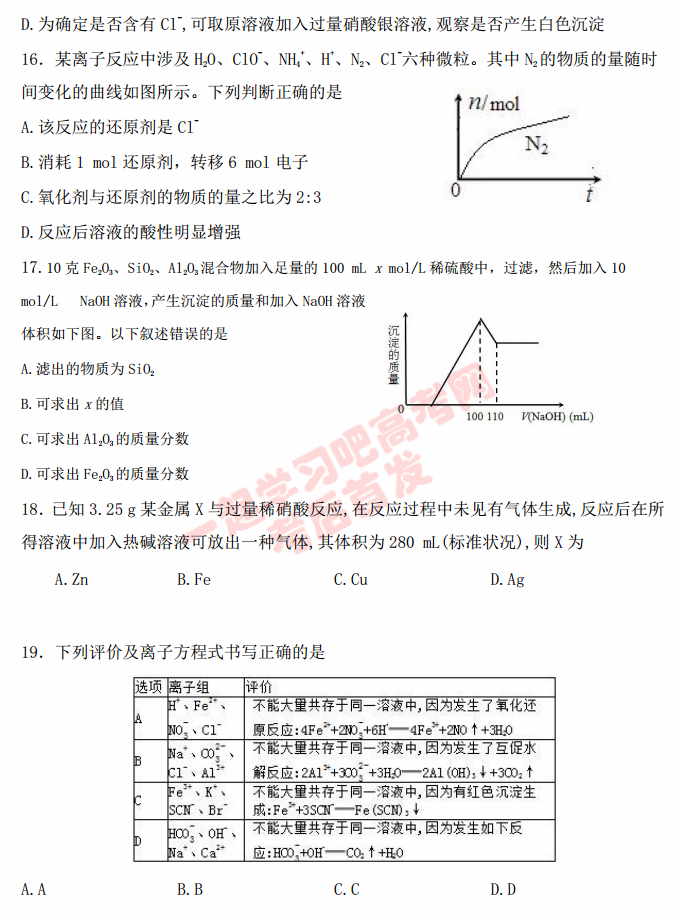 河北石家庄辛集中学2017届高三上第一次阶段考化学试题及答案(5)