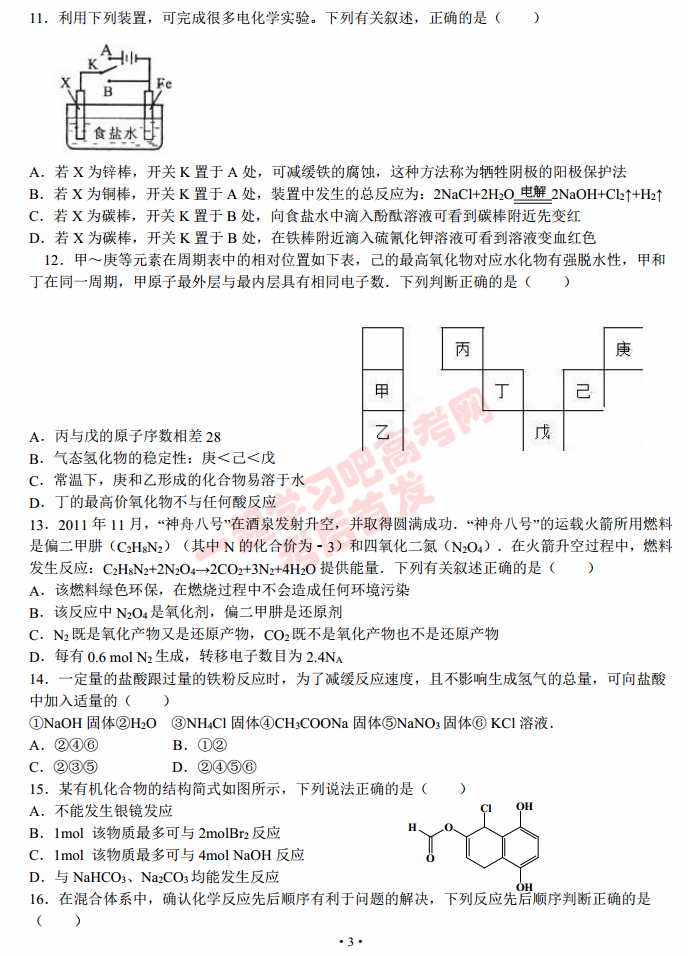 河北唐山一中2017届高三10月月考化学试题及答案(3)