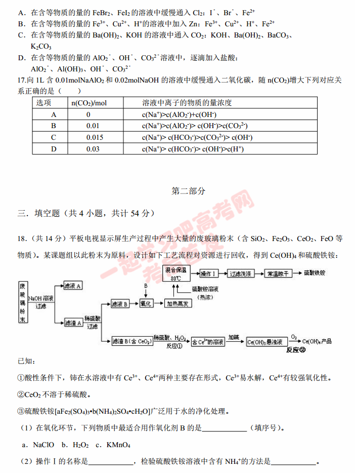 河北唐山一中2017届高三10月月考化学试题及答案(4)