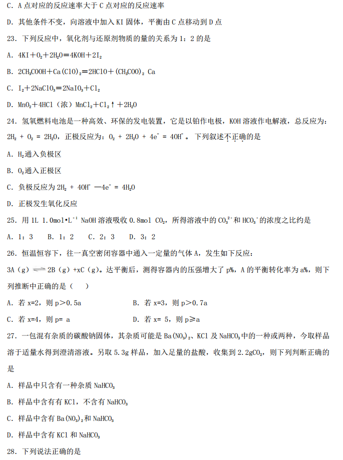 定州中学2016-2017学年高三上学期第二次月考化学试题及答案(5)