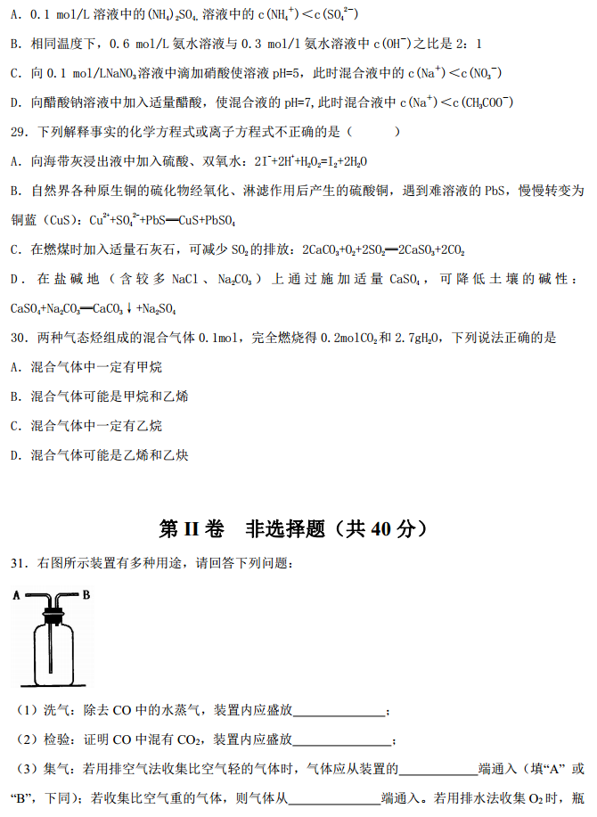 定州中学2016-2017学年高三上学期第二次月考化学试题及答案(6)
