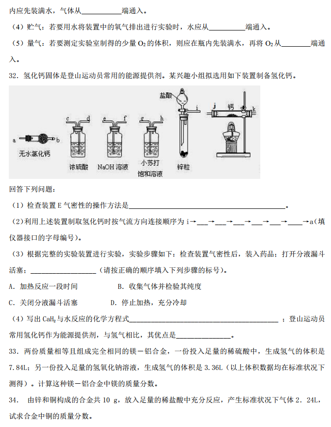 定州中学2016-2017学年高三上学期第二次月考化学试题及答案(7)