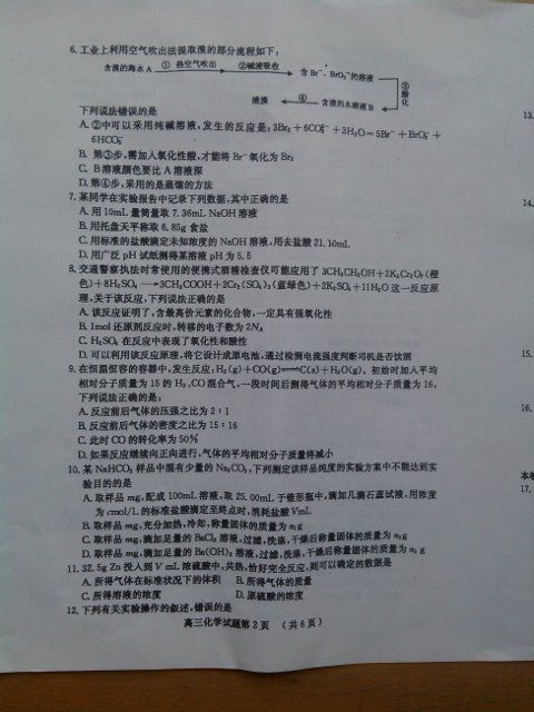 湖北部分重点中学2017届高三第一次联考化学试题及答案(2)