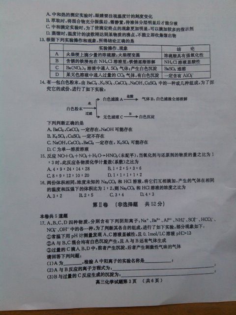 湖北部分重点中学2017届高三第一次联考化学试题及答案(3)
