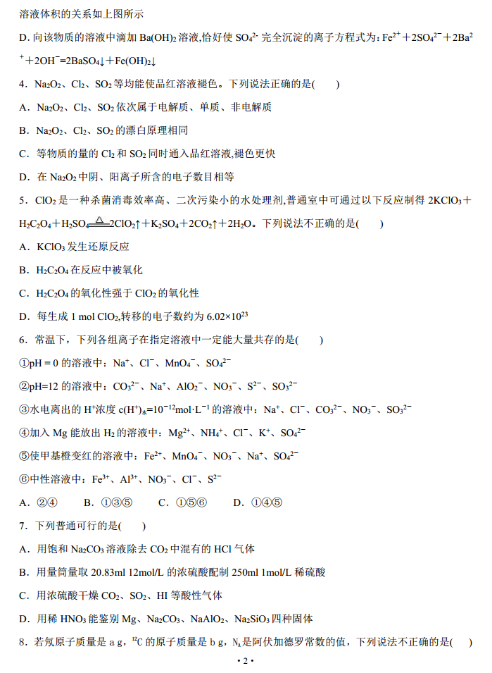 河北承德市2017届高三上学期期中考试化学试题及答案(2)