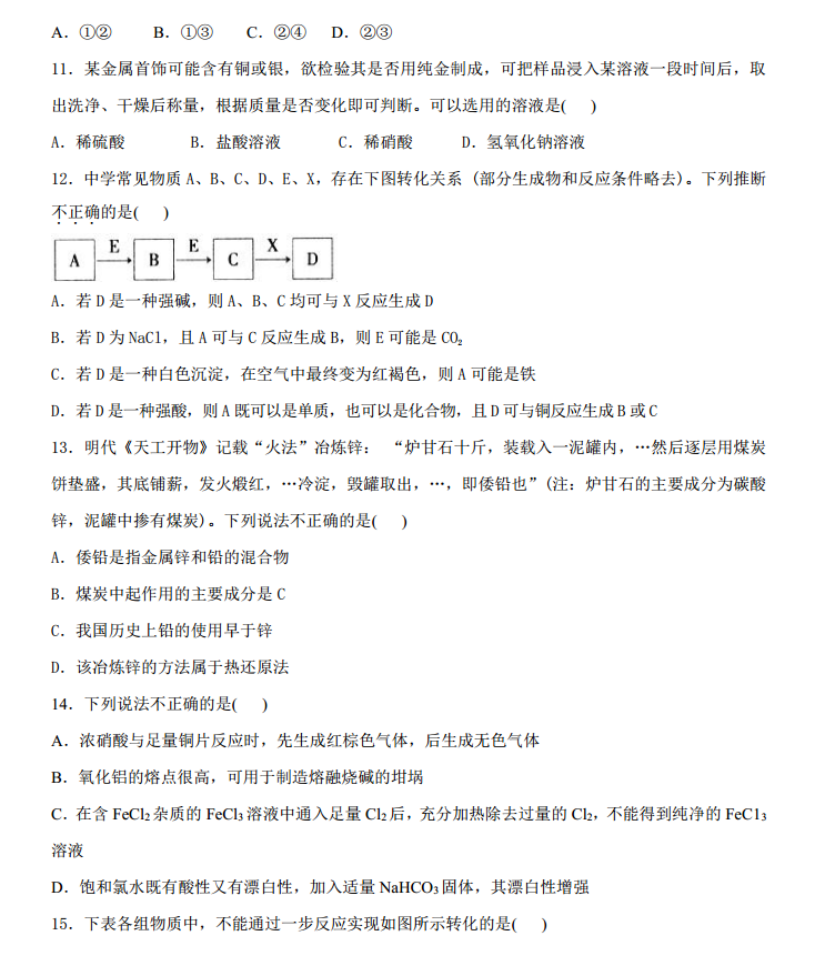 河北承德市2017届高三上学期期中考试化学试题及答案(4)