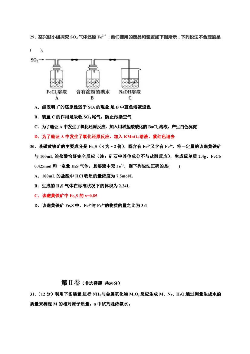河北衡水中学2016-2017学年高三上学期期中考化学试题及答案(10)