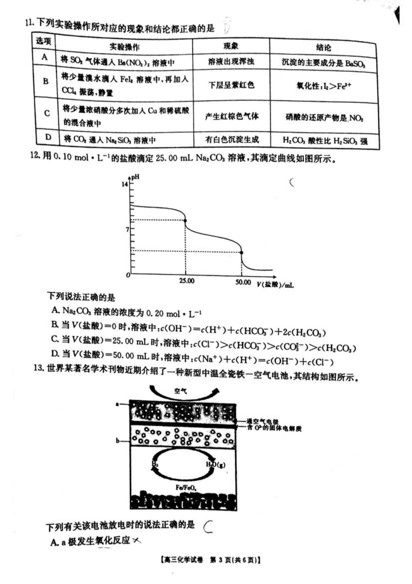 河南河北名校2017届高三第二次省际联考化学试题及答案(3)