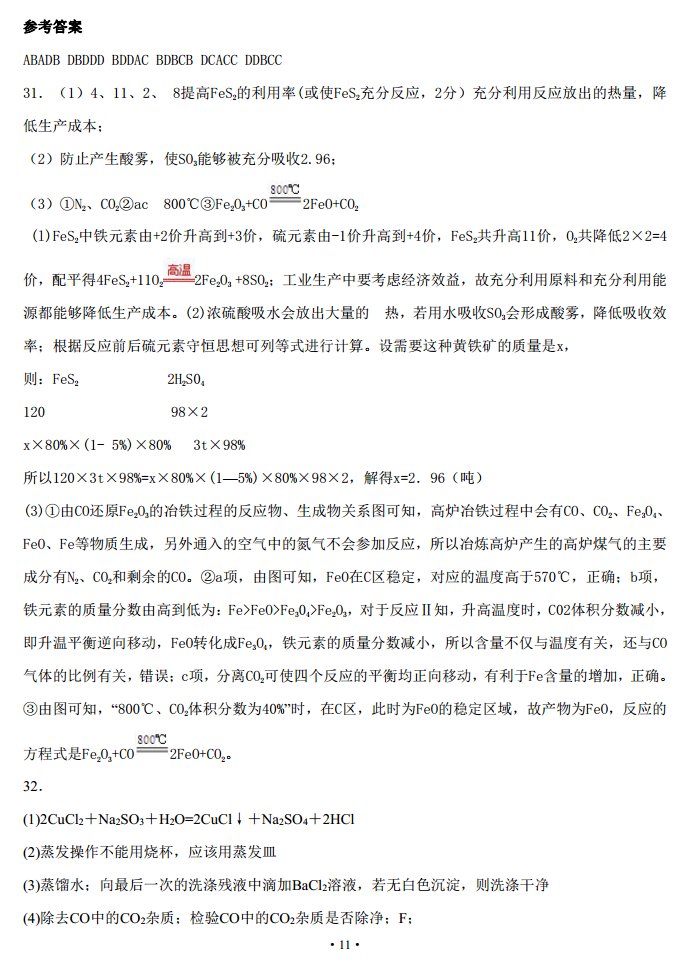 河北定州中学2017届高三上期期中考试化学试题及答案(11)
