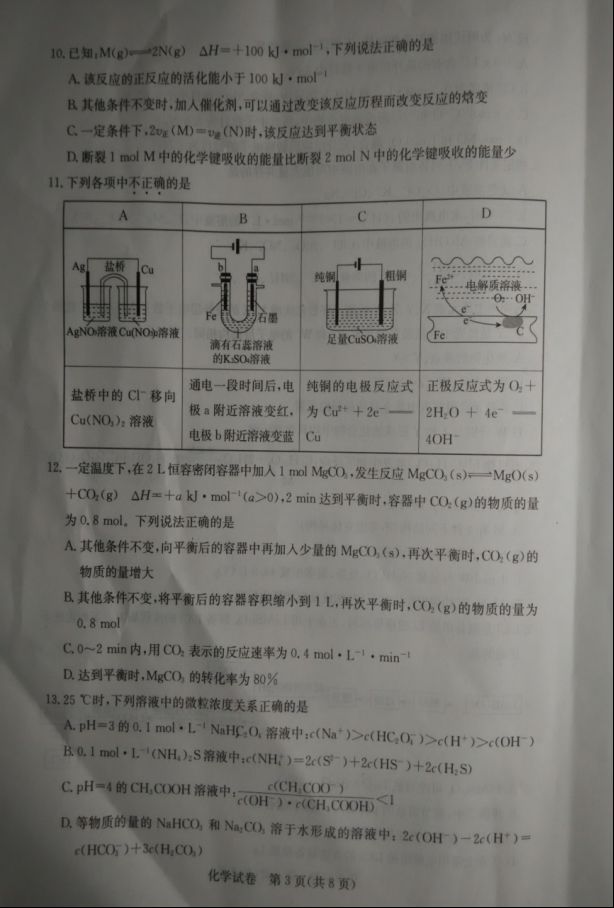 河北沧州2017届高三12月教学质量监测化学试题及答案(3)