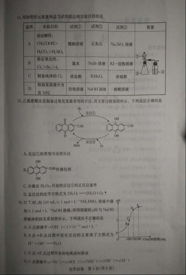 河北沧州2017届高三12月教学质量监测化学试题及答案(4)