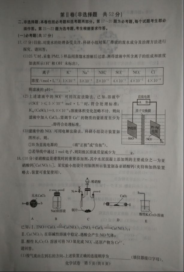 河北沧州2017届高三12月教学质量监测化学试题及答案(5)