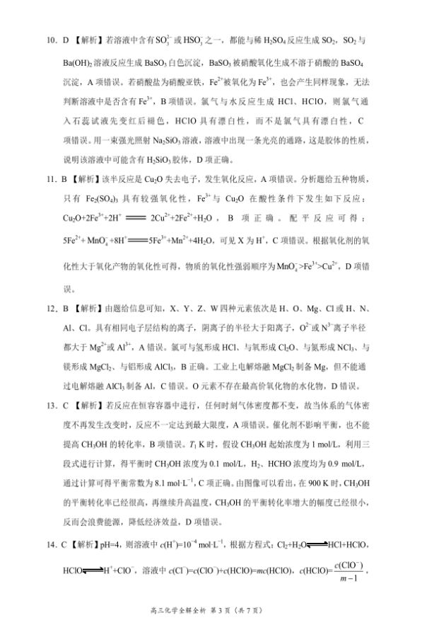 豫南九校2016-2017学年上期期末质量考评高三化学试题及答案(11)