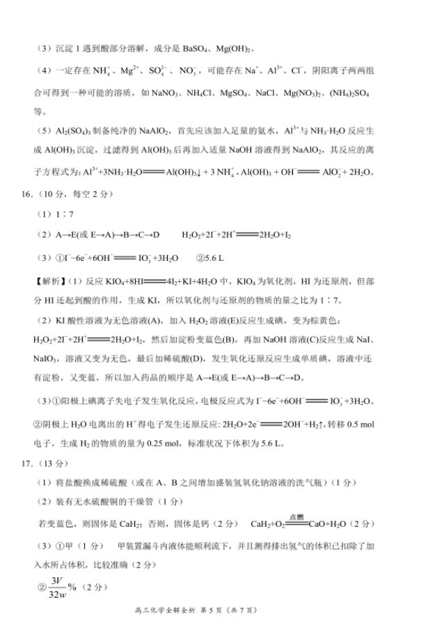豫南九校2016-2017学年上期期末质量考评高三化学试题及答案(13)