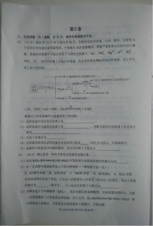 豫南九校2016-2017学年上期期末质量考评高三化学试题及答案(5)