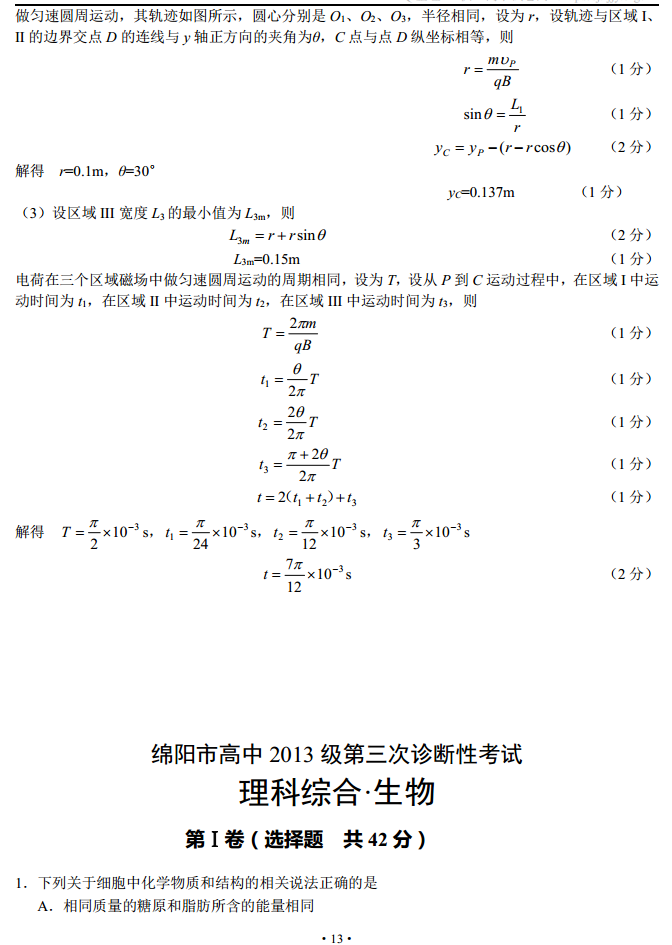 绵阳高中2013级第三次诊断性考试理综化学试题及答案(12)