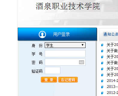 http://www.jqzy.com/酒泉职业技术学院教务管理系统