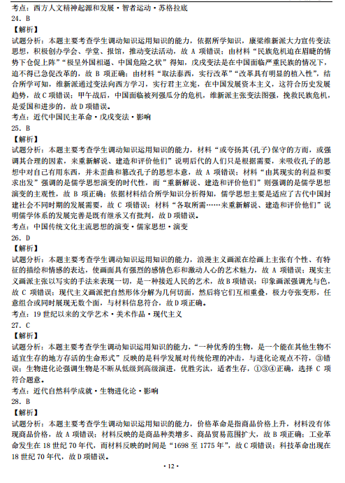 2016湖北枣庄第七中学高三下学期中考文综历史试题及答案(12)