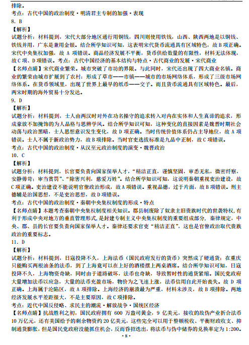 2016湖北枣庄第七中学高三下学期中考文综历史试题及答案(8)