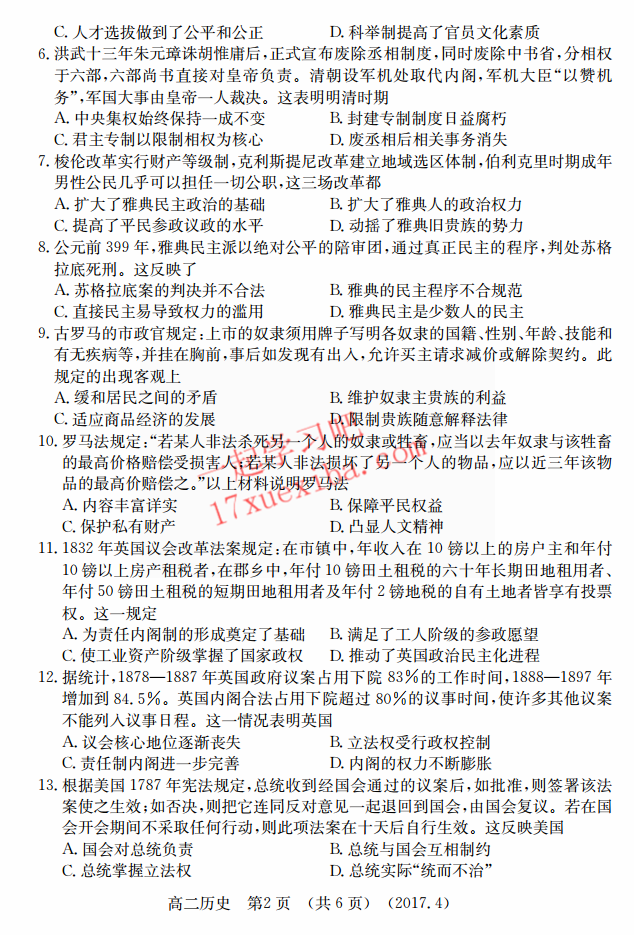 洛阳市2016-2017学年高二期中考历史试题及答案(2)