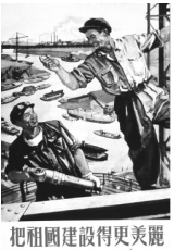 20、右图是我国“一五”计划期间为配合大规模建设而绘制的宣传海报。对其解读正确的是( )
