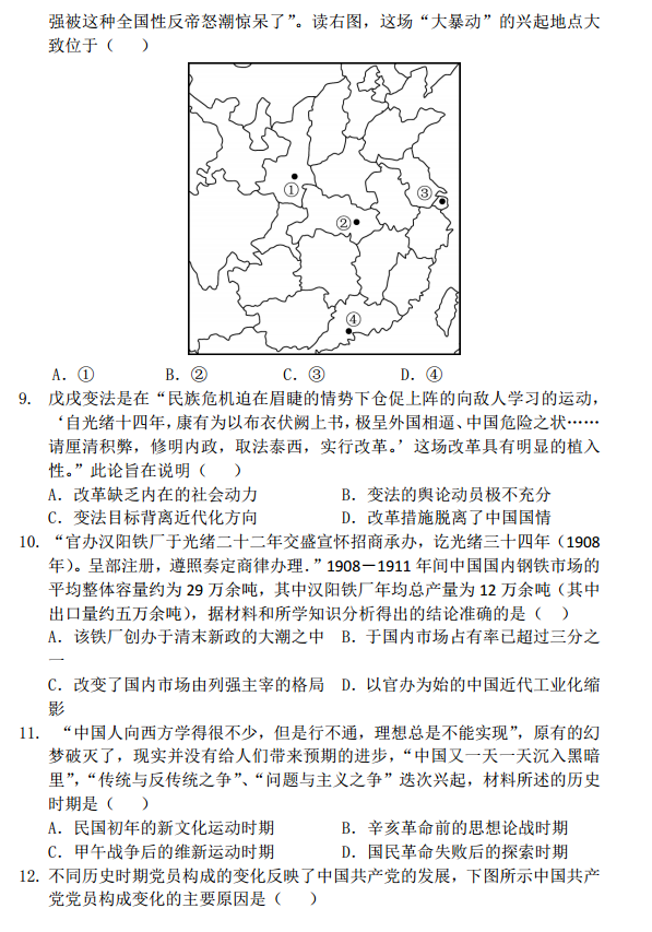 湖北部分重点中学2016-2017年度上学期高三起点考历史试题及答案(2)