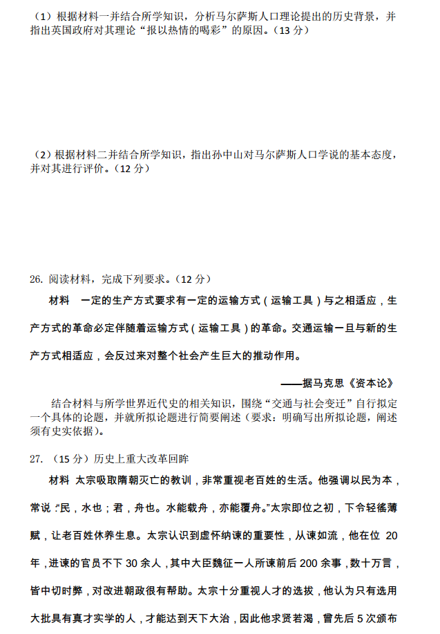 湖北部分重点中学2016-2017年度上学期高三起点考历史试题及答案(6)