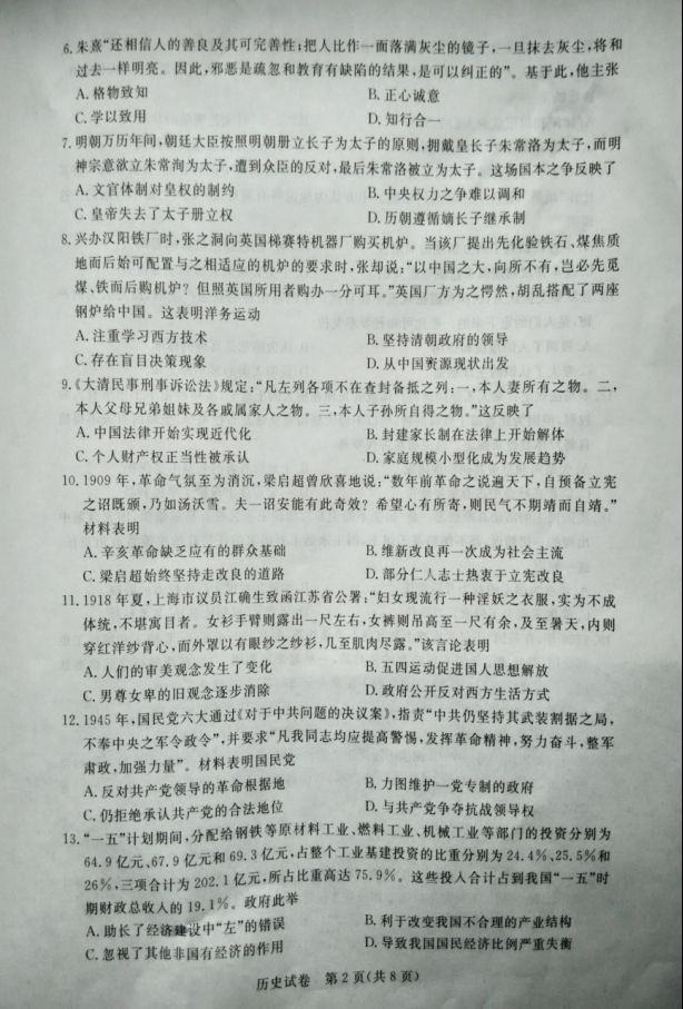 河北沧州2017届高三12月教学质量监测历史试题及答案(2)