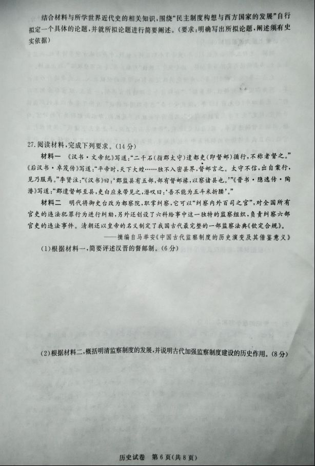 河北沧州2017届高三12月教学质量监测历史试题及答案(6)