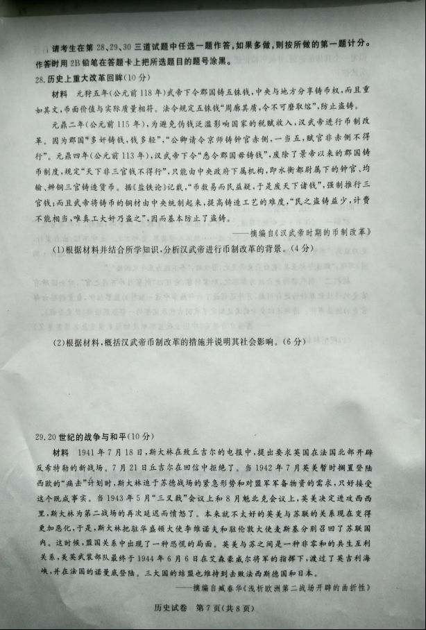 河北沧州2017届高三12月教学质量监测历史试题及答案(7)