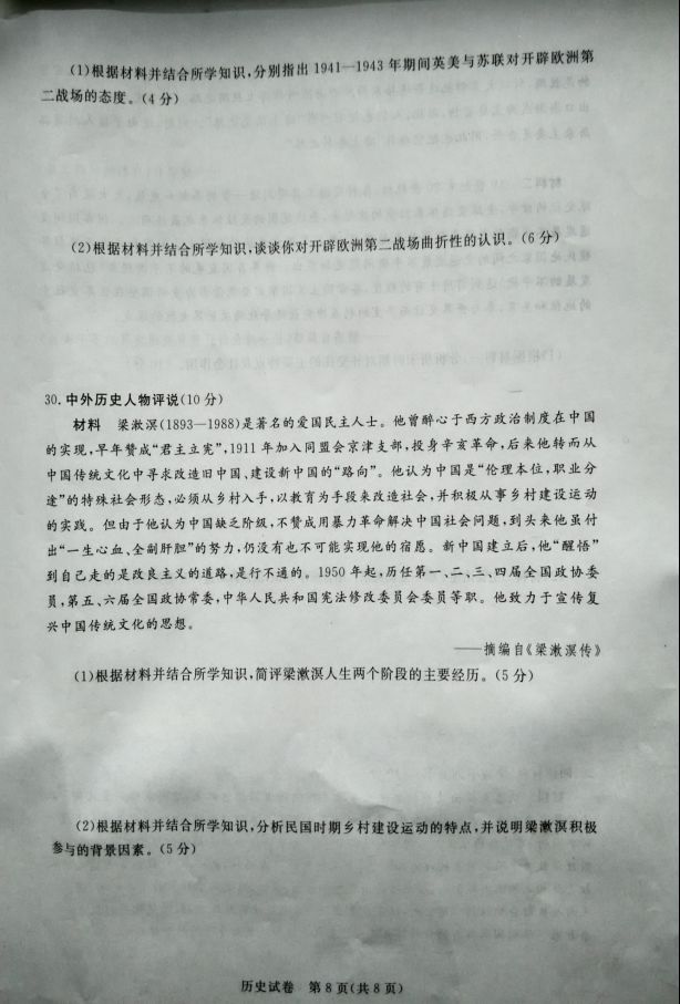 河北沧州2017届高三12月教学质量监测历史试题及答案(8)