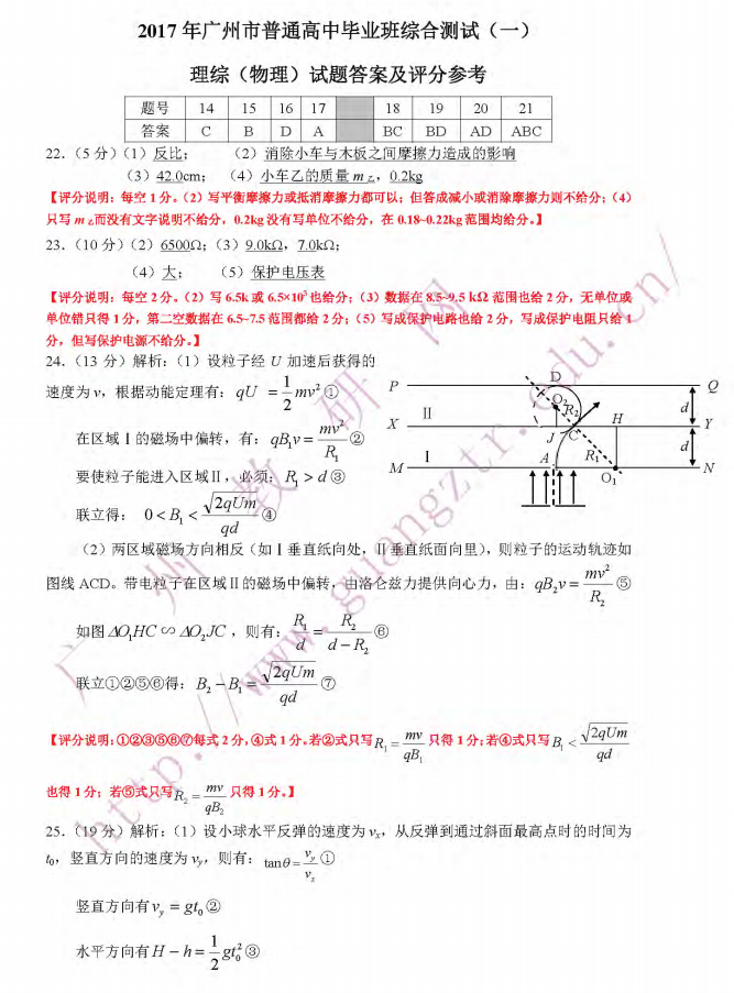 2017年广州一模理综试题及答案(2)